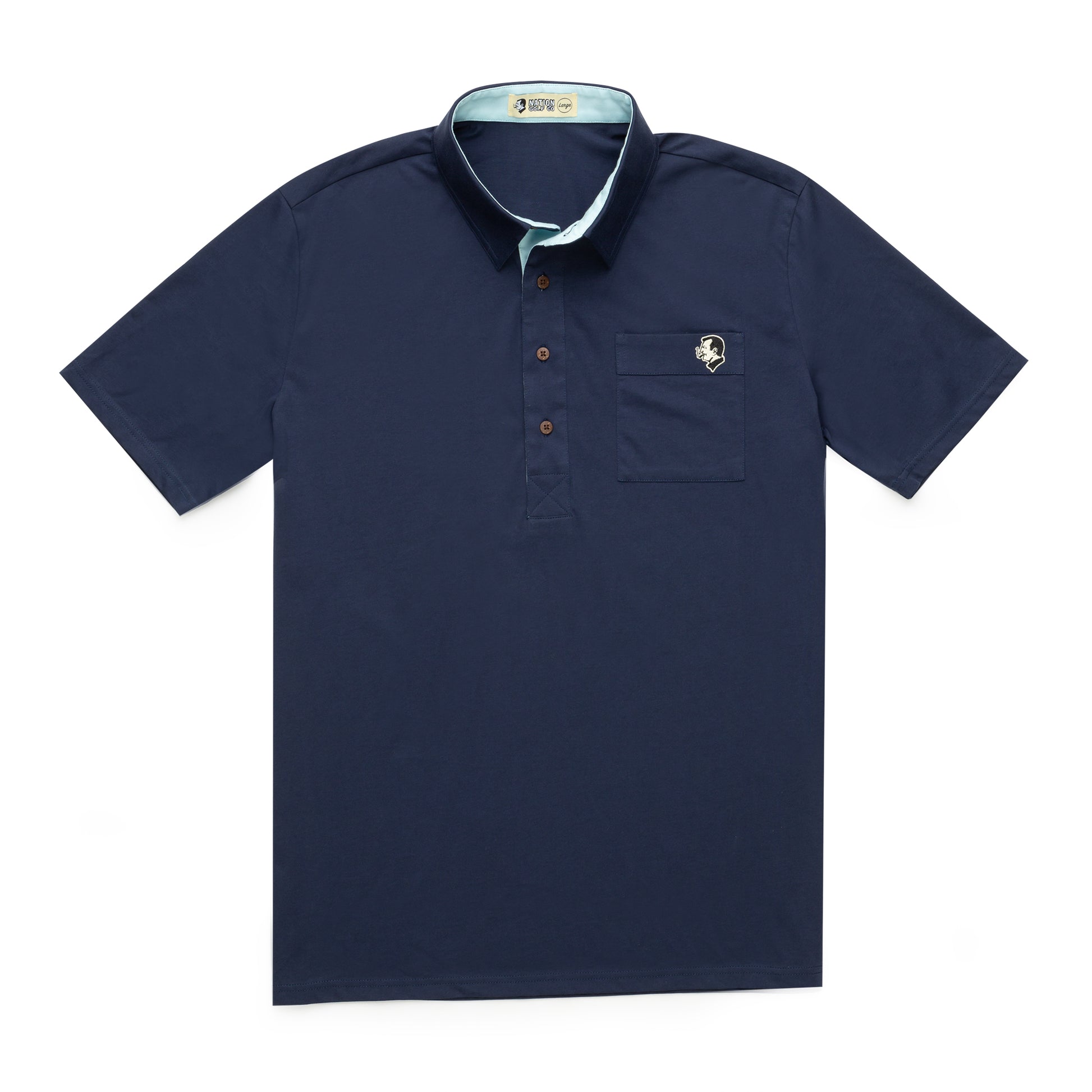 - Classic navy shirt body with tonal contrast of sky blue detail