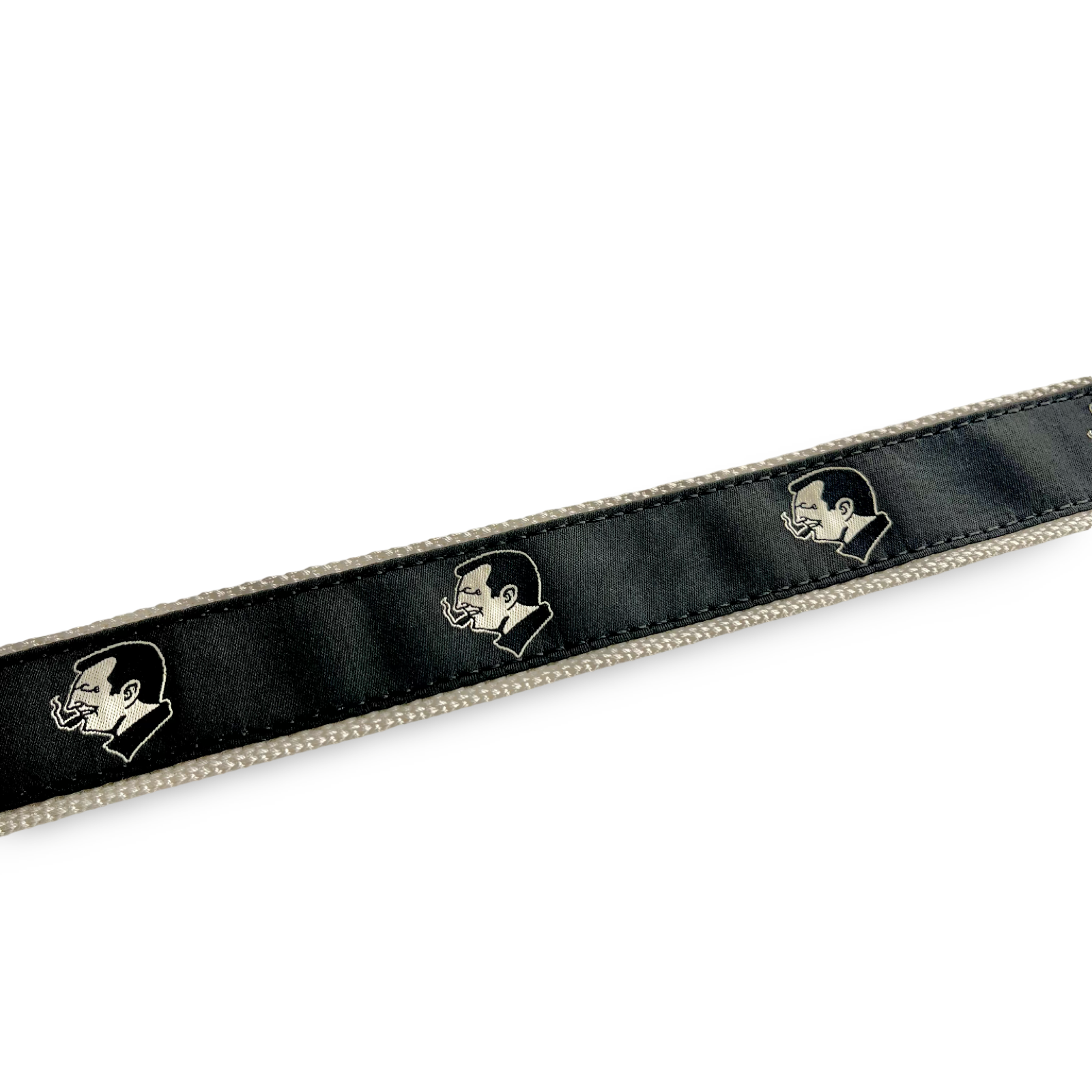 - Woven canvas with black ribbon and Smoking Tom emblems.